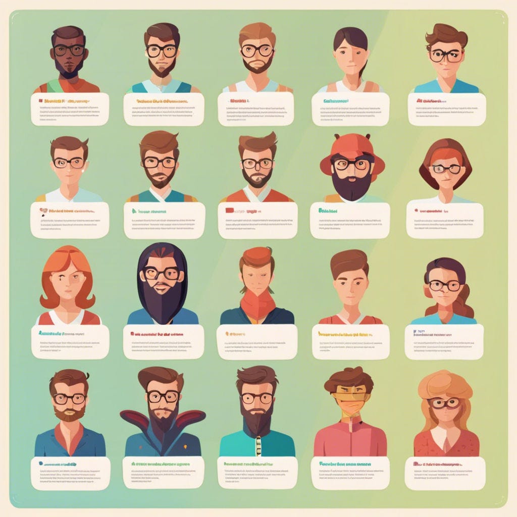 3. צ(יי)רו את הפרסונות שלכםן: צרו (באופן גרפי) פרסונות מפורטות בהתבסס על הניתוחים שלכםן. כללו פרטים דמוגרפיים, מטרות, צרכים, התנהגויות ונקודות כאב. הוסיפו תמונות וסיפורי רקע כדי להפוך אותן לניתנות להזדהות.