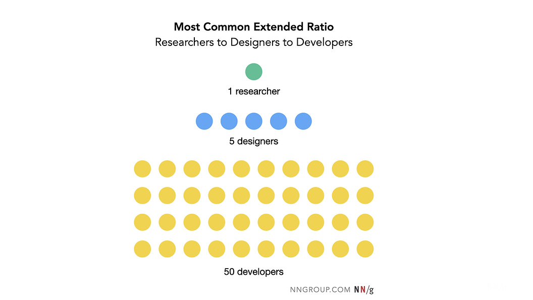 יחסים אלה יכולים כמובן להשתנות משמעותית על בסיס גורמים כמו גודל החברה, מורכבות המוצר, בגרות עיצוב הממשק המשתמש, והצרכים הספציפיים של הארגון. חברות טכנולוגיה גדולות ובוגרות יותר נוטות להיות בעלות יחסים גבוהים יותר של מעצבים וחוקרים בהשוואה למפתחים ככל שהן מגדילות את צוותי עיצוב הממשק המשתמש שלהן. לדוגמה, Dropbox עברה ממעצב אחד לכל 10 מפתחים ב-2013 למעצב אחד לכל 6 מפתחים ב-2017 ככל שהיא גדלה.