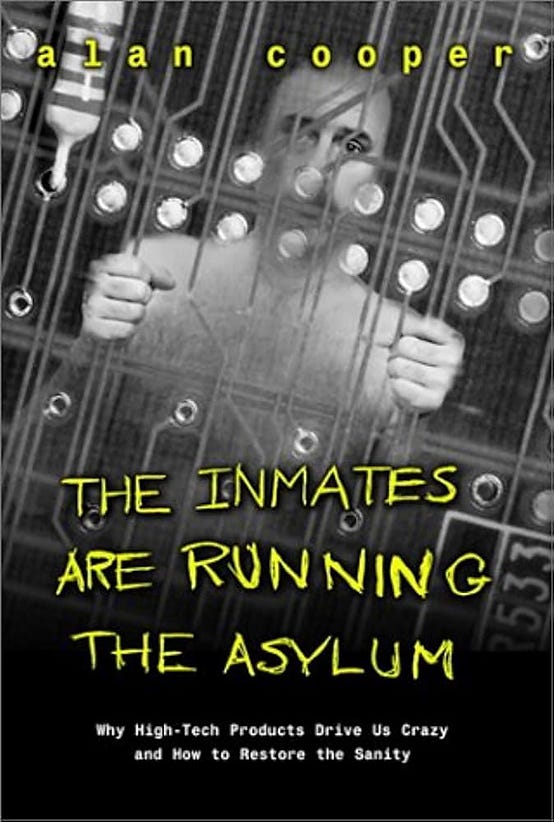קופר טוען בספרו שגישה זו מובילה למוצרים מבלבלים וקשים לשימוש עבור אנשים ממוצעים. הוא משתמש במטאפורה של “אסירים מנהלים בית משוגעים” כדי להמחיש כיצד תעשיית התוכנה איבדה את חוויית המשתמש על ידי הענקת שליטה לטכנולוגים (ה”אסירים”) בתהליך העיצוב במקום למעצבי ממשק משתמש מנוסים. עיצוב ממשק משתמש, הכולל הבנה עמוקה של מודלים קוגניטיביים, מטרות והתנהגויות של משתמשים, צריך להנחות את תהליך פיתוח המוצר ולא להגיע אחריו (אם בכלל). הספר מבקר את תפיסת ה”פיצ’ריטיס” (featuritist) של תעשיית הטכנולוגיה - דחיסת יכולות רבות ככל האפשר במוצר, מה שמוביל למוצרים נפוחים ומסובכים המציפים (קוגניטיבית) את המשתמשים. במקום, קופר מקדם עיצוב סביב מטרות משתמש ספציפיות והפחתת מורכבות באמצעות ממשקים חכמים.