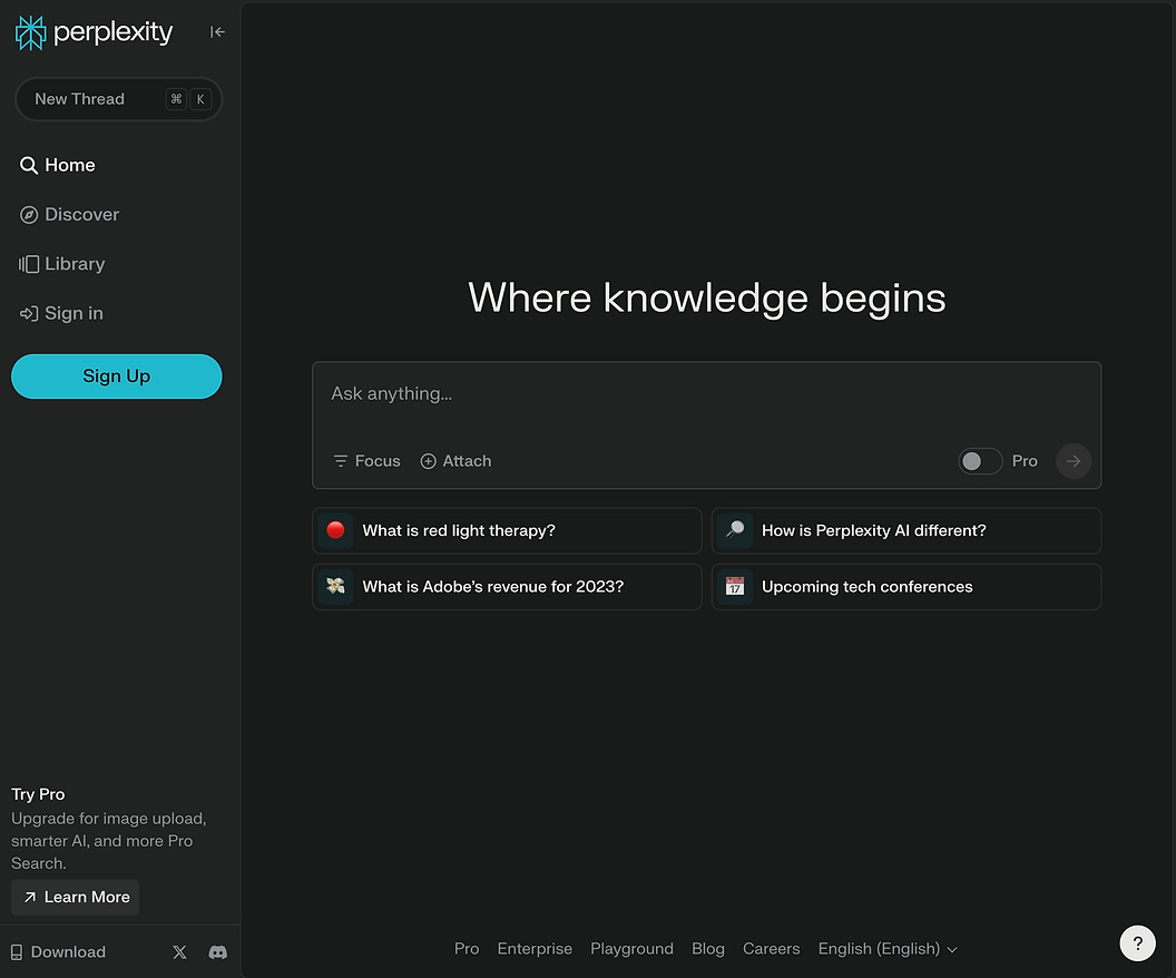 בדומה ל- ChatGPT, פרפל מציע עמוד בית יחסית נקי עם שורת חיפוש בולטת במרכזו. וזה, חבריםות, הולך להיות הדבר היחיד שמזכיר את גוגל.